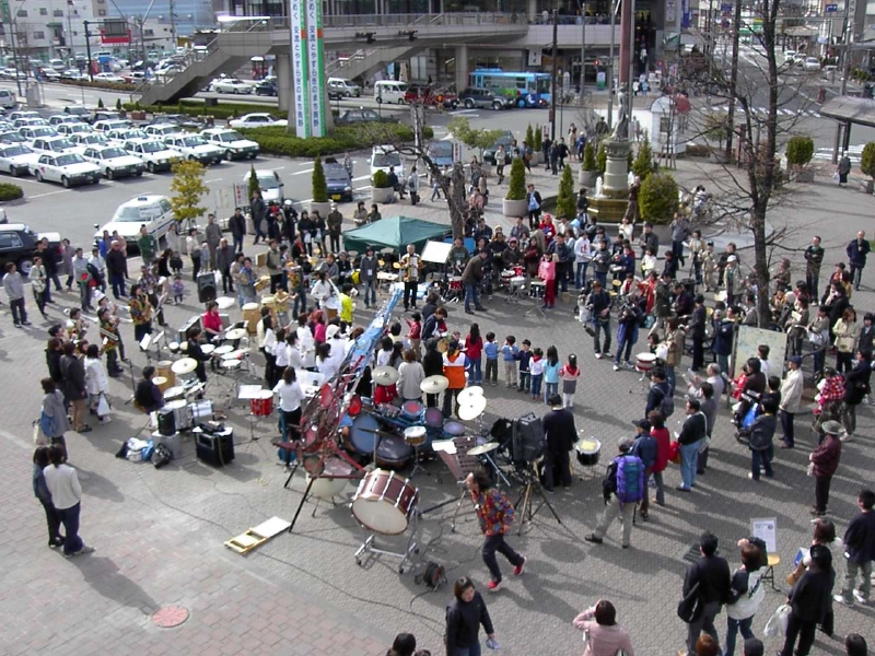 ガラクタを打ち鳴らすパフォーマンス(コンサート)には、音楽素養に関係なく誰でも参加できます。ガラクタ演奏に自由に参加することで心と体を元気に、ガラクタ演奏が街に繰り出すことで、街を元気にします。
