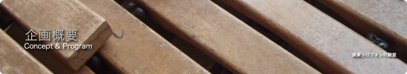 コンセプトの核心は、モノと環境によって音楽が成り立っていることを、今一度考える機会をもつことです。地元商店や工場から楽器の素材となる空き缶や鉄廃品の回収を行い、さらにそれら廃品を素材とした楽器づくり、製作した楽器を使っての演奏パフォーマンスまでを一貫しておこなうことで完結します。また、身の回りの廃品を会場に持ち寄って、時を同じくして一斉に音楽活動をすることは、地球環境と人の心とをむすぶ、ひとつの表現芸術であり21世紀の芸術運動と位置づけます。